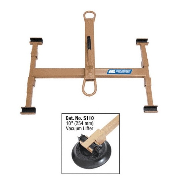 This Glass lifter works conjunction with a crane hoist or forklift to make the task of moving glass easy up to 700 lbs. (318kg). With a 180 degree Edgewise rotation with three locking points.